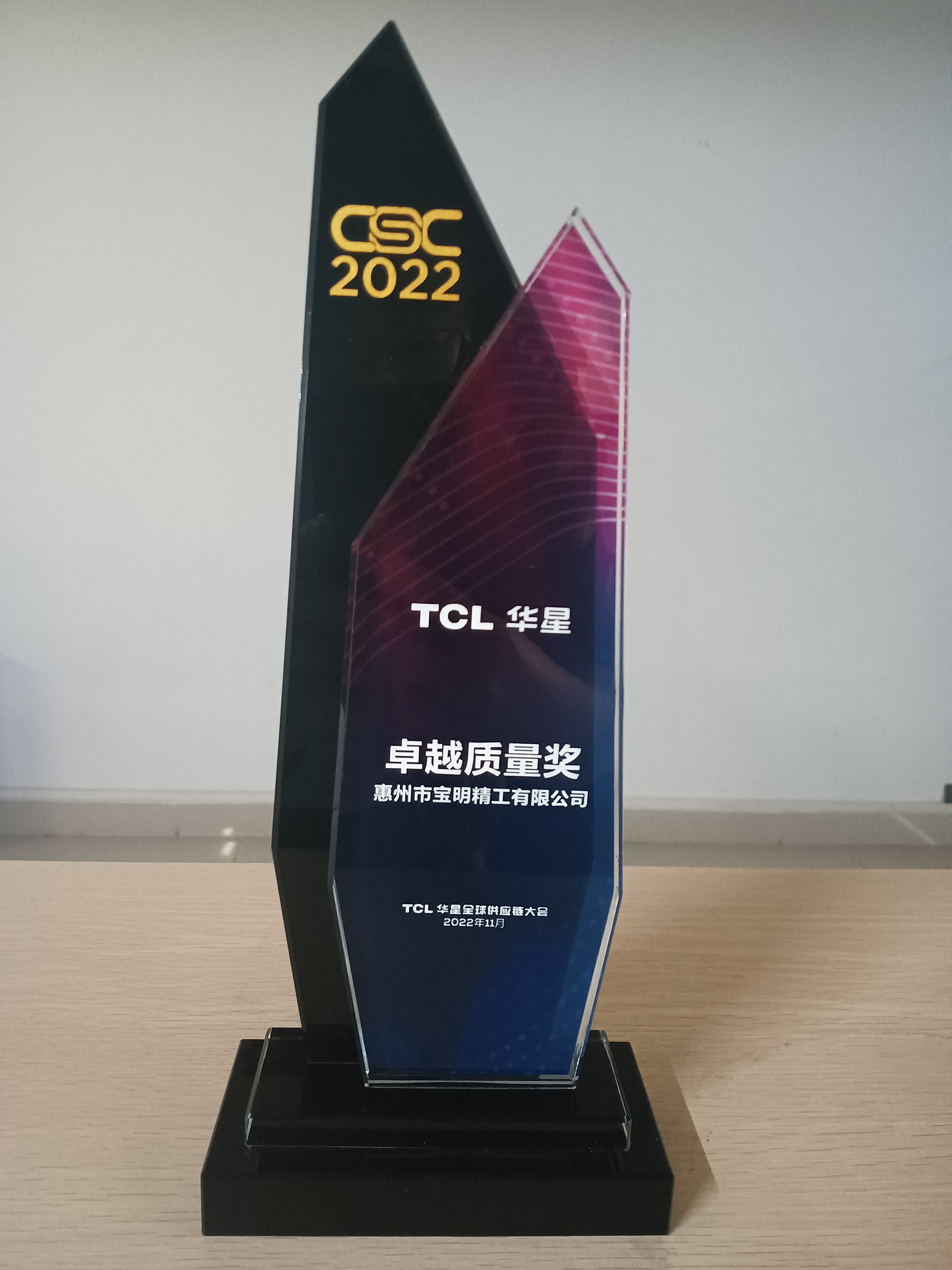 乐玩(中国)精工荣获TCL华星“卓越质量奖”